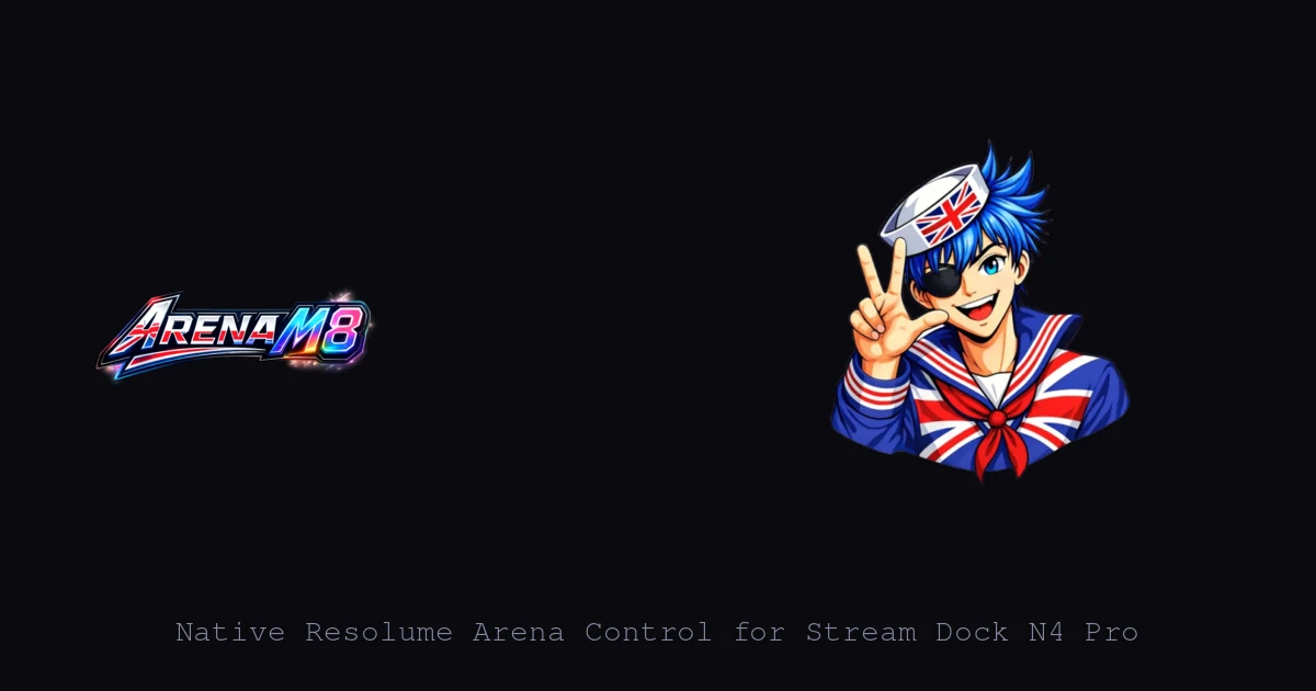 ArenaM8 — shipped under the marketing name "Oi!" — is a VSD Craft plugin that turns a Mirabox Stream Dock N4 Pro into a first-class control surface for Resolume Arena. Live clip thumbnails on the LCD keys, one-tap clip triggers, encoder-mapped layer opacity and speed, touch-bar crossfading, OSC custom actions. REST for the composition tree and thumbnails, OSC for low-latency triggers, 30-second composition cache to keep thumbnails fresh without hammering Arena. No middleware, no Bitfocus Companion, no Stream Deck software in the chain.